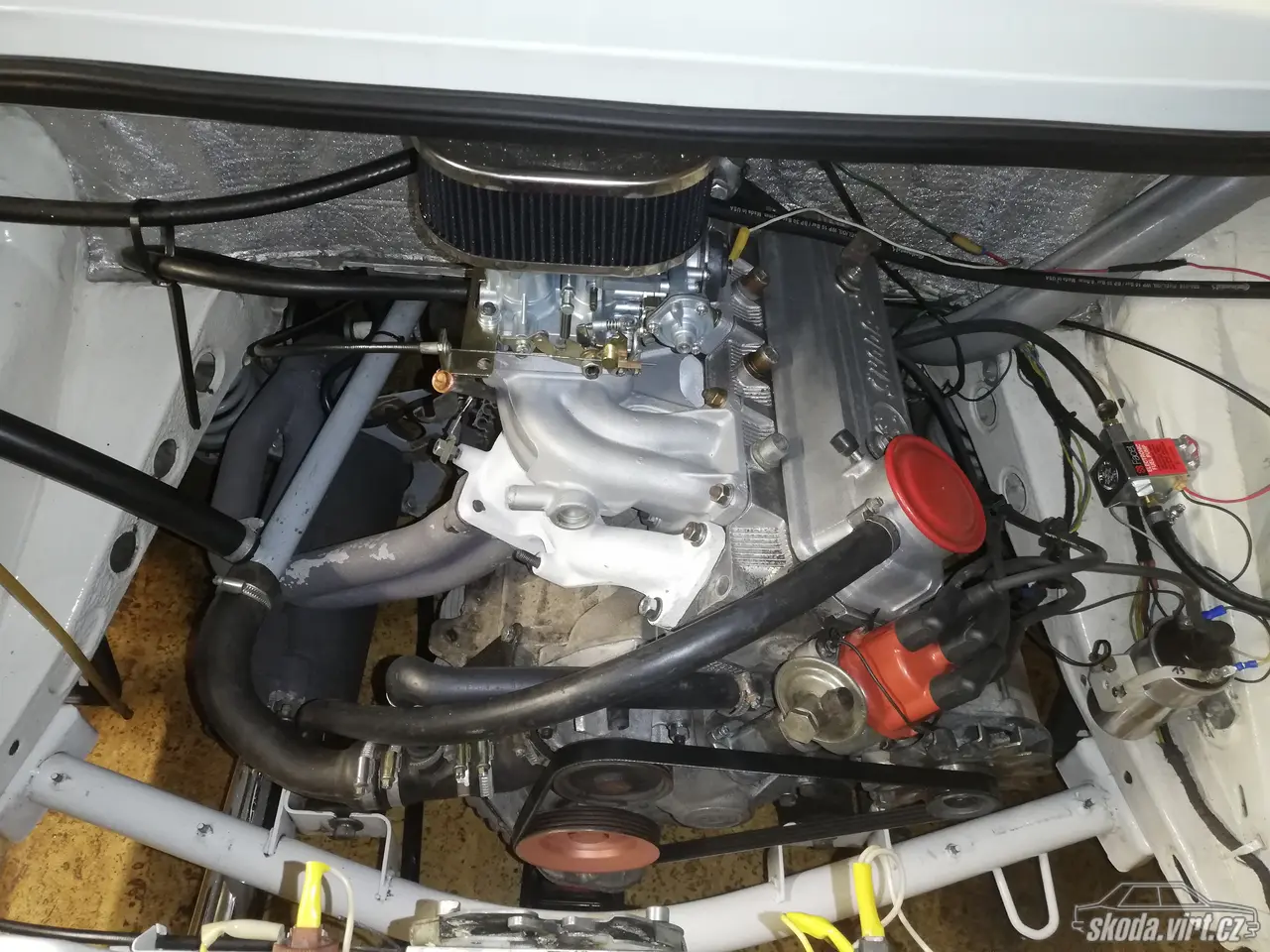 Motor: Původní rozebrán a nahrazen novým eMkovým blokem 120 a osazen novými díly. Vačka (eRko),komplet nová sada LS,nová hlava LS s úpravami,nová klika,ojnice atd. Původní zůstal odlehčený setrvák a řemince a vačka. Malá řemenice na alternátoru. Sehnán zánovní karburátor TAZ 1500 a druhý připravený ze 136. Boční víko zdvihátek z favoritu a hliníkové ventilové.